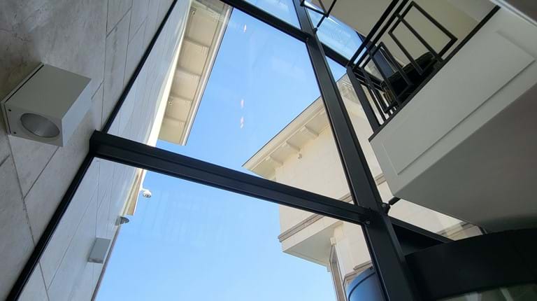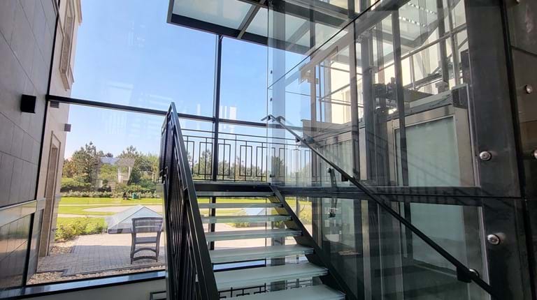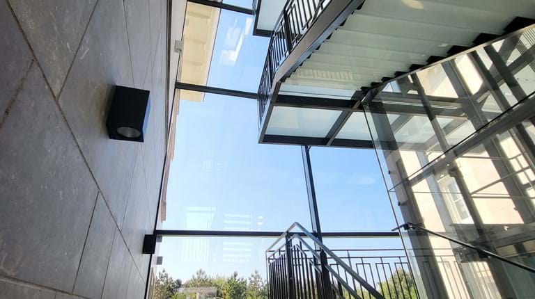 Wij hebben de stalen draagconstructies voor de glazen liftschacht, de glazen gevels en de bordessen gemaakt.