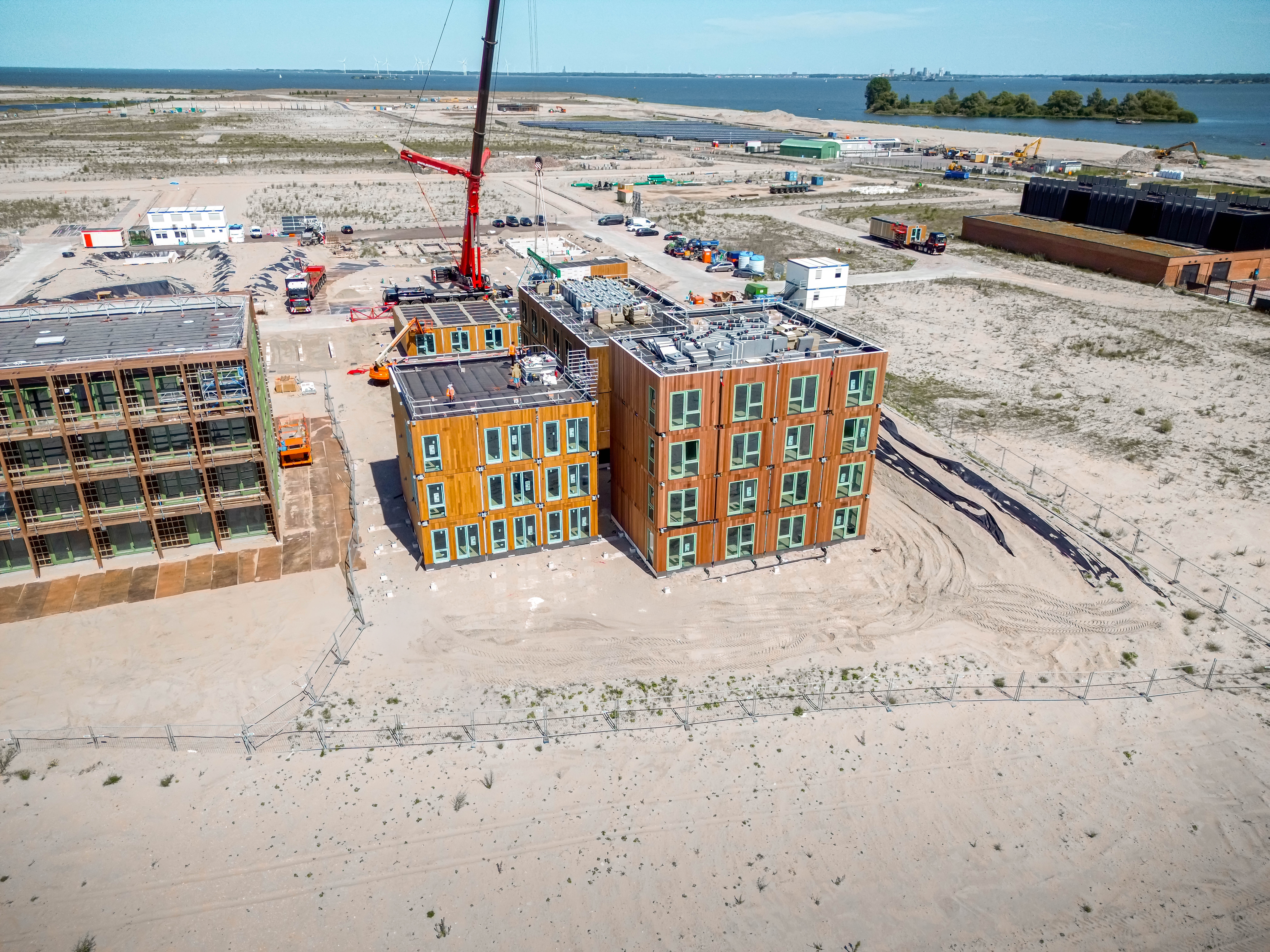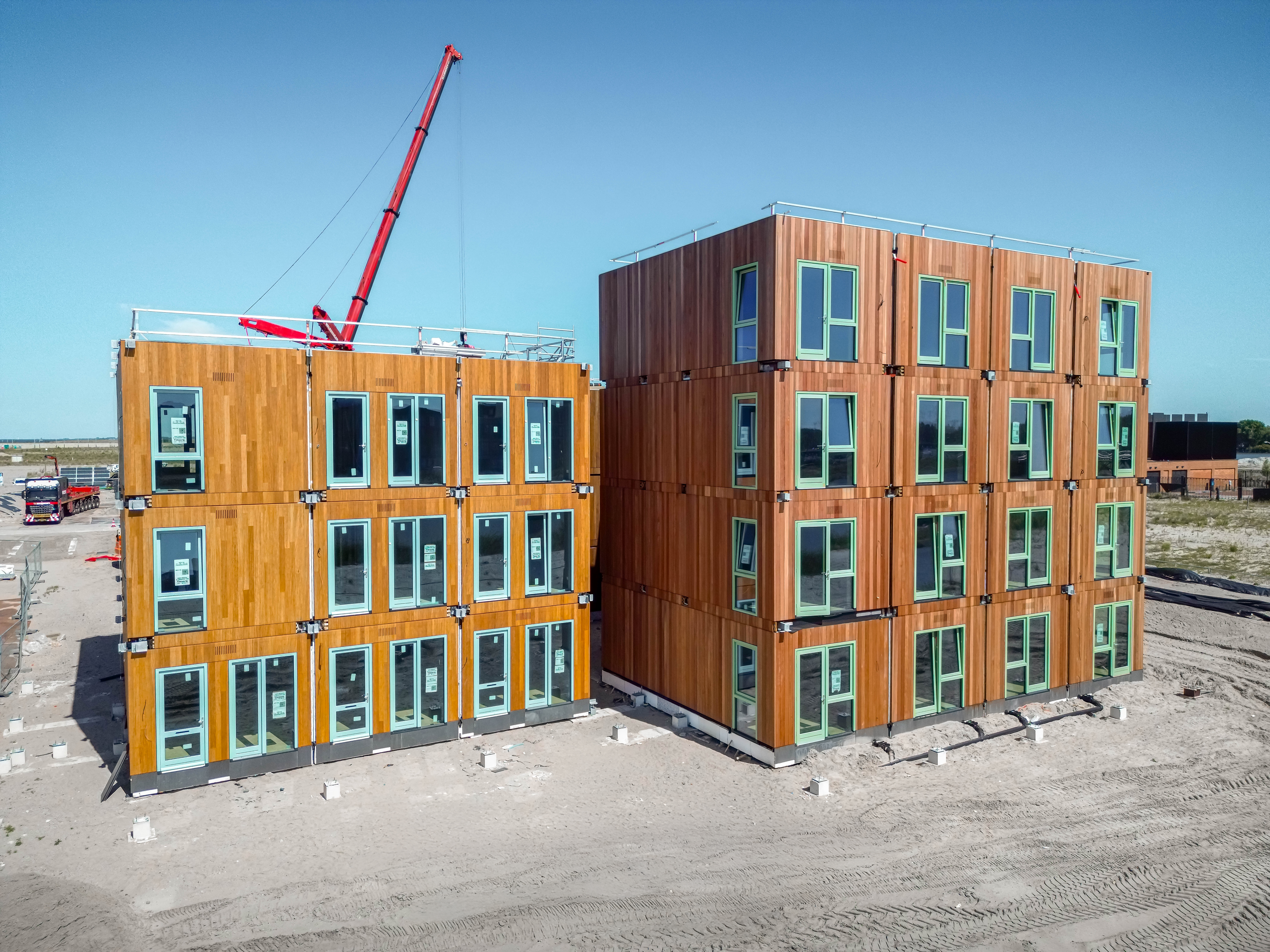 Voor Homes Factory B.V. realiseerden we de complete staalconstructies voor 29 modulaire woningen. Deze woningen behoren tot de eerste woonblokken op Strandeiland en laten zien hoe modulair bouwen en staalconstructies zorgen voor snelheid, precisie en kwaliteit.