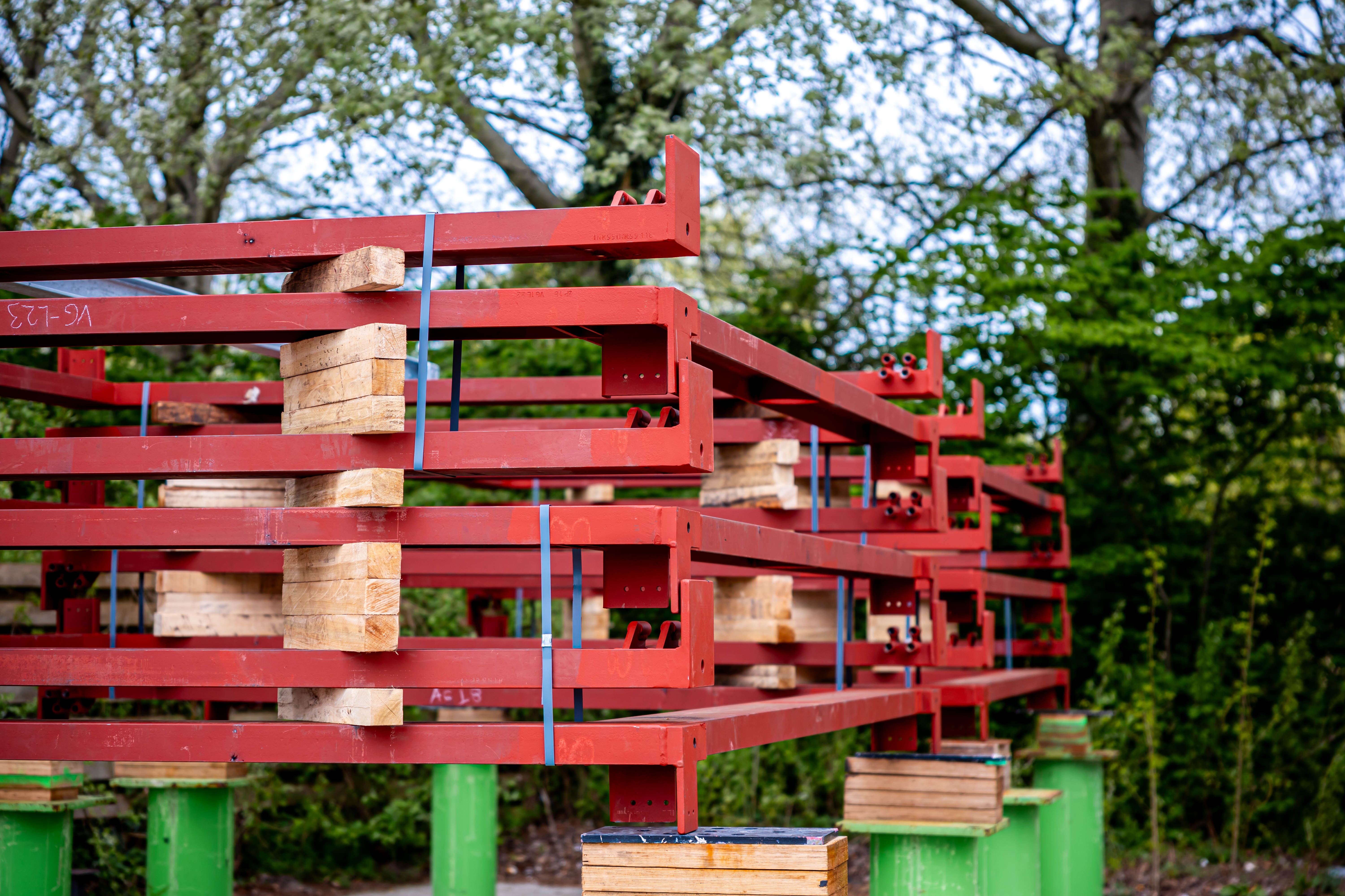 In onze werkplaats in Maassluis begon de productie van de stalen frames. Zodra de definitieve tekeningen binnen waren, gingen we direct aan de slag met de werkvoorbereiding. We ontwikkelden een speciale mal om elk frame exact op maat te produceren. Zo konden we efficiënt werken en tegelijkertijd een hoge maatvastheid garanderen.